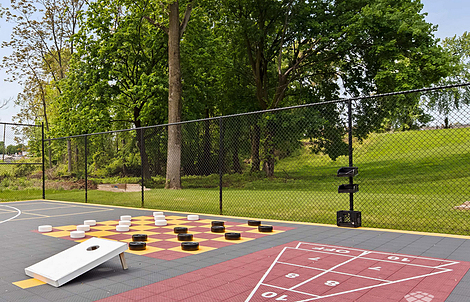 VersaCourt specializes in the design and development of fun and unique amenities for neighborhood. With a VersaCourt multi-sport game court, your residents can play tennis, shoot hoops and play shuffleboard, all on the same surface. Using any combination of our wide selection of color options, as well as customizable logos, graphics and text, we can develop a truly unique court solution that gives your apartment complex that wow factor.