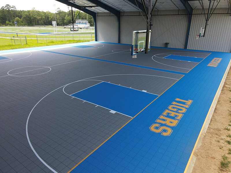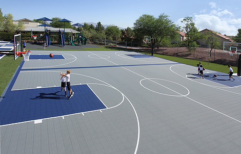 VersaCourt outdoor basketball courts deliver consistent performance and unmatched durability throughout the seasons. Our specially-engineered, open grid tile design drains and dries quickly and provides improved grip and traction needed for competitive play. We offer a variety of court tile options that are completely customizable to best fit your athletic requirements.