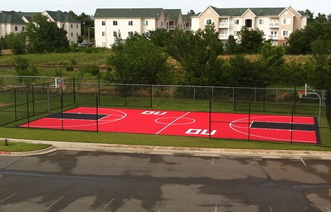 We offer 14 different DIY basketball court kits available in a variety of color combinations, but can also customize courts to your space.